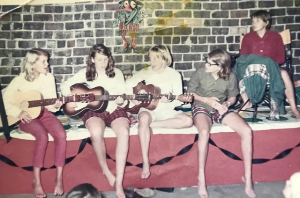 Singing has been an integral piece of my journey as a “saint maybe.” I have a song notebook (lyrics and guitar chords) in my own unique chronological order, and every song in my well-worn blue notebook reminds me of a particular phase, relationship or event in my life. On pages wrinkled with use and yellowed with age, there are lots of folk songs that I sang with my junior high friends in our band, The Checkerboard Squares: Wheat Checks, Rice Checks, Corn Checks, and Dog Chow (that was me). In the middle of the notebook, there are protest songs that I sang during my college years. Throughout the binder, you will find falling-in-love songs and breaking-up-is-hard-to-do songs (one or more for each relationship). There are the mountain songs and bluegrass melodies that I sang as I claimed my maternal roots. These are interspersed with the songs of the women’s movement that I learned during graduate school. And needless to say, there are songs for folk masses and youth groups, the music that brought me to the Episcopal Church in high school.